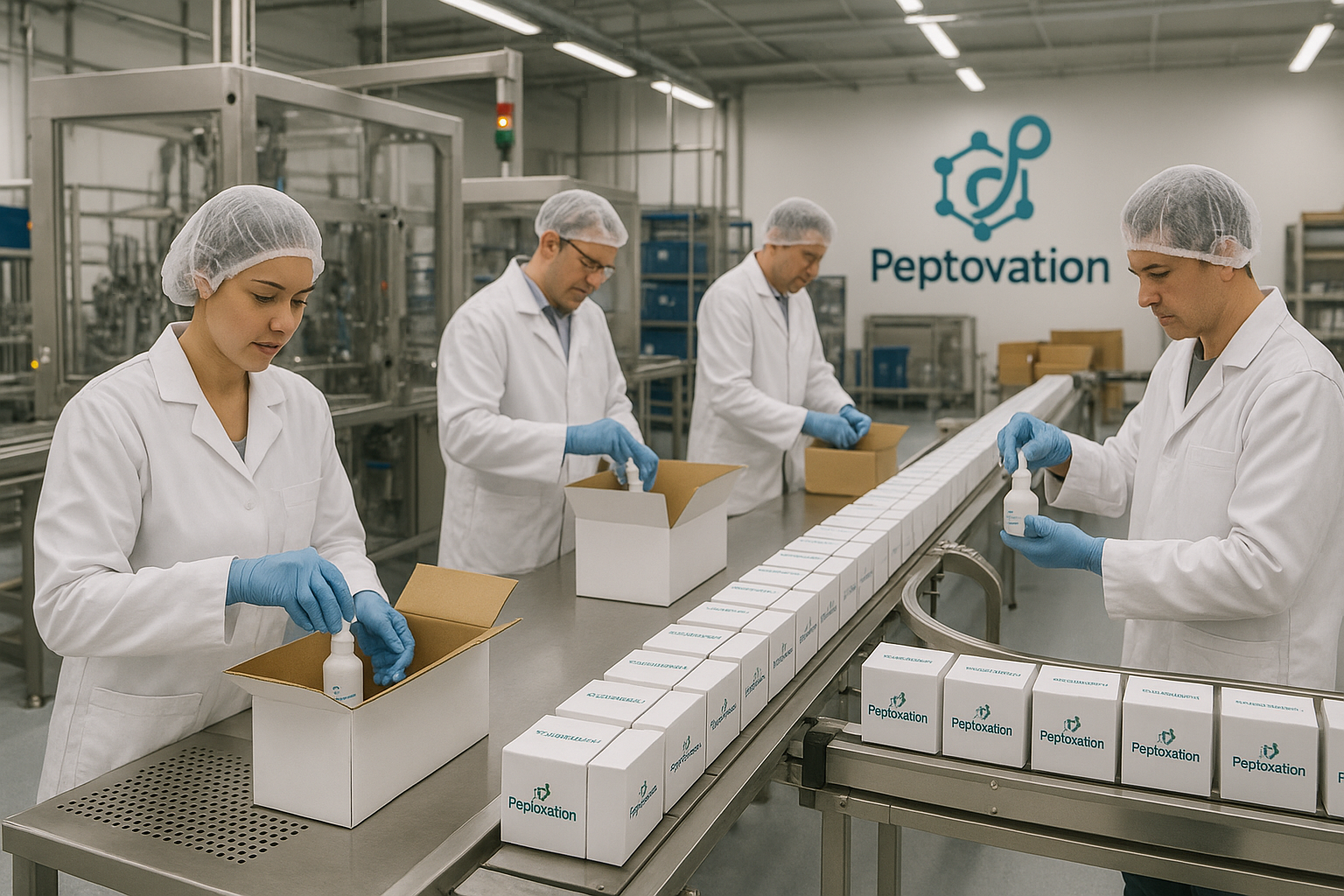 At Peptovation we are science First — Every product is developed in our 30,000 sqft state of the art GMP-certified peptide manufacturing facility with rigorous quality control.